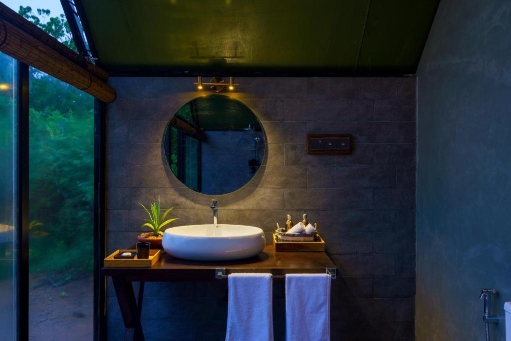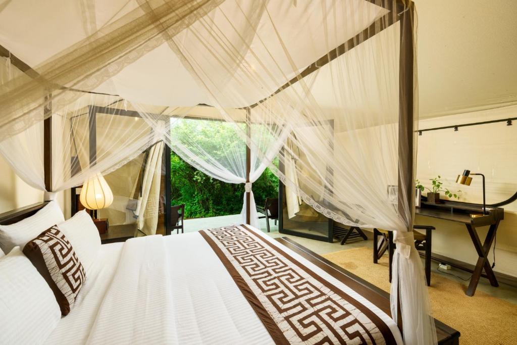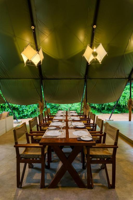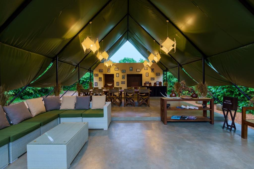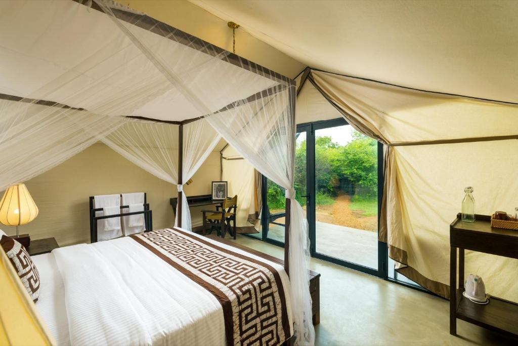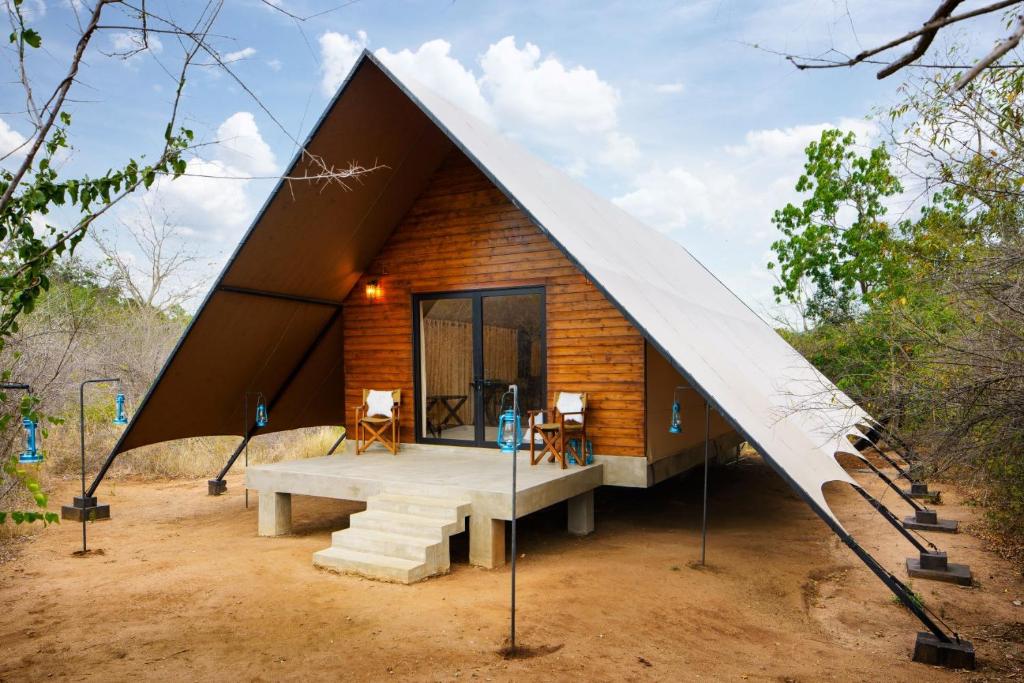 Activities and Location: Located 24 mi from Mattala Rajapaksa International Airport, the camp is near attractions such as Kataragama Temple (3.1 mi) and Bundala Bird Sanctuary (29 mi). Guests can enjoy walking tours and explore nearby sites like Situlpawwa and Tissa Wewa.