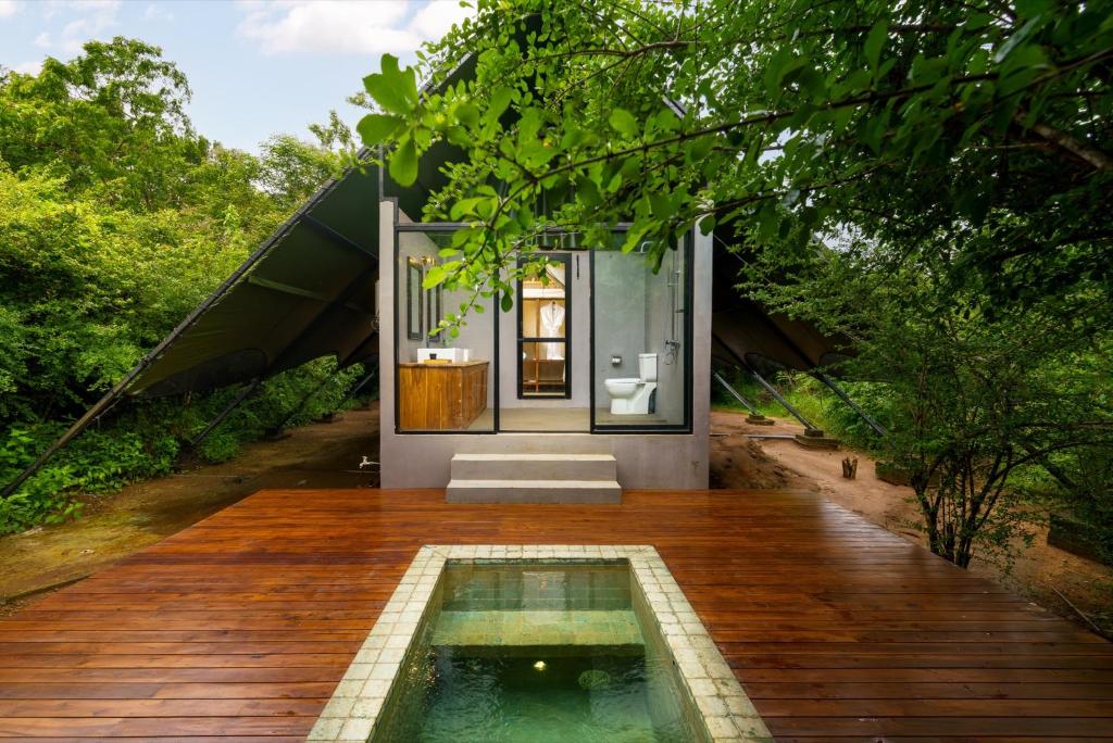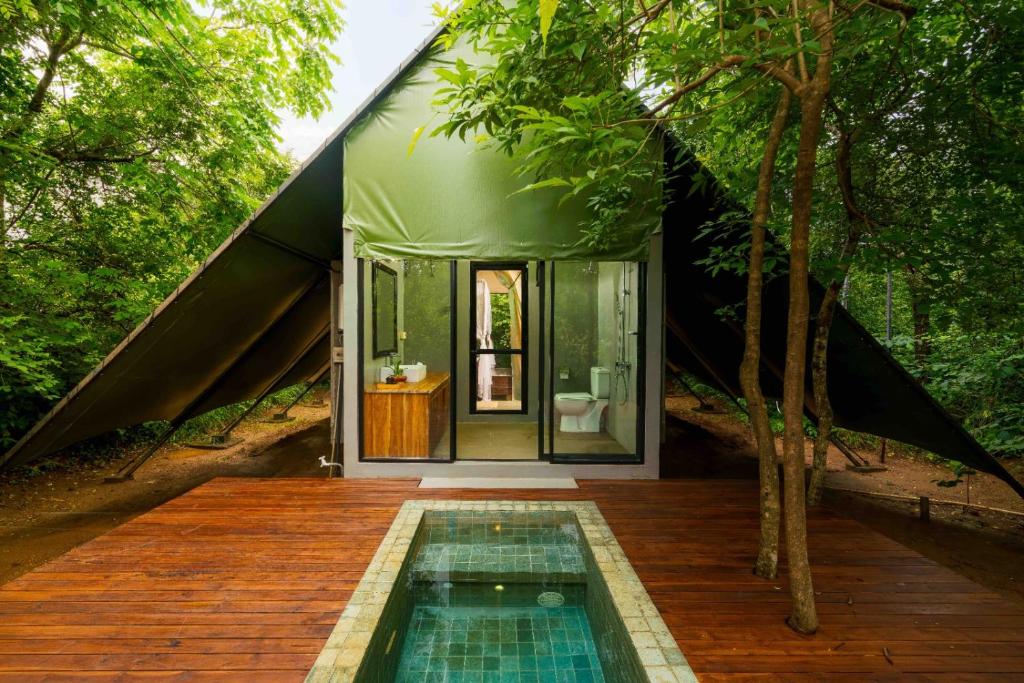 Elegant Accommodations: Makini Bush Camp in Yala offers a 5-star luxury tent experience with a lush garden, a year-round outdoor swimming pool, and free WiFi. Guests enjoy private check-in and check-out services, a lounge, and an outdoor fireplace.