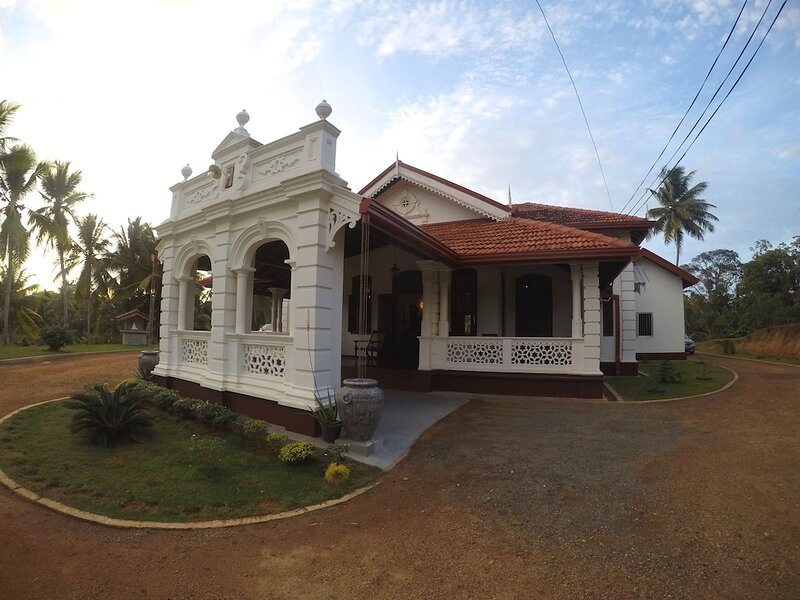 A beautifully refurbished, spacious old Colonial Villa in Matara set in 10 acres of tropical gardens, plantations & paddy fields. Just 20 mins to popular tourist beaches Mirissa and Weligama, 10 mins from Matara exit of Southern Expressway E01. Enjoy an authentic rural village experience with traditional home cooked Sri Lankan meals. Be greeted by visiting peacocks, parrots and other exotic birds. An idyllic place for relaxation villa is located away from the hustle and bustle but still close to usual tourist attractions in the area. 45min to Galle.